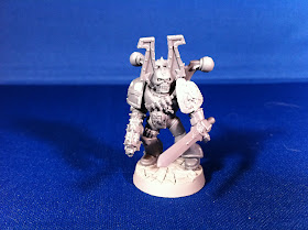 The construction is continuing. The Wolf Guard are basically done, although I'd like to add a little more bling to their models. Pictures will be posted soon. I've had to take a break for a couple of days tho as I badly gashed my thumb - I suppose that it's only fitting that my own blood is the first collected for the Blood God. :)